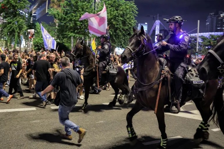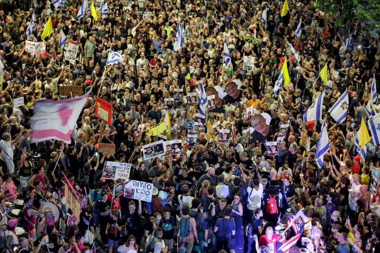 以色列政府宣布計畫軍事接管加薩城後,週六(8月9日)特拉維夫爆發大規模抗議,數萬民眾走上街頭,要求立即結束在加薩走廊持續近兩年的戰爭。