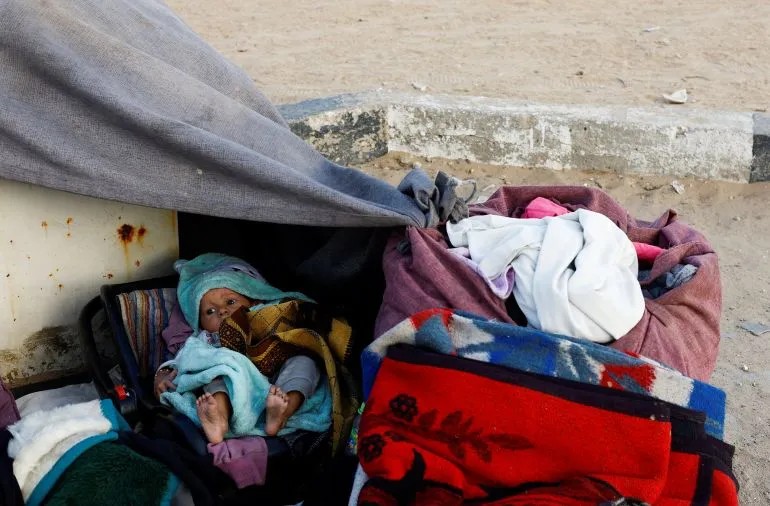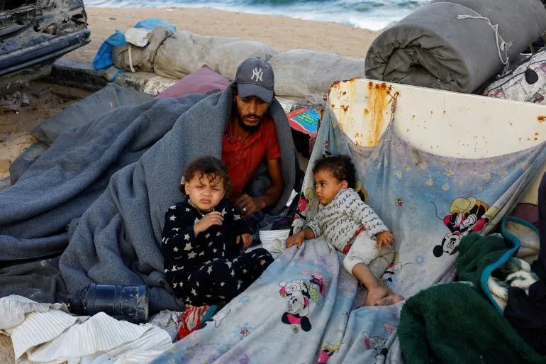 但有些家庭不知该去哪里。因此,他们在这里搭建了临时帐篷,靠近纳扎里姆走廊,距离以色列主要军事基地仅 1 公里(0.6 英里)。