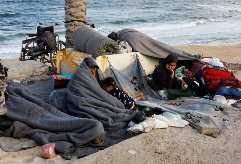 图片:流离失所的巴勒斯坦人在加沙中部露宿街头
