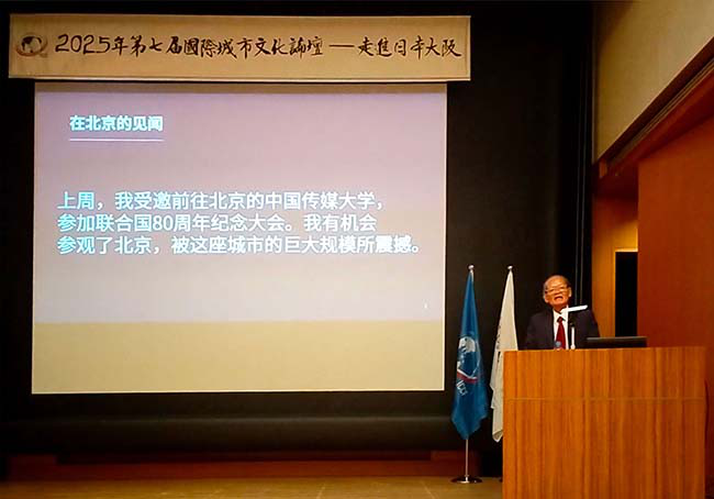 (中華新聞通訊社/中華時報10月4日訊)2025年10月4日,由中華時報傳媒集團(香港)發起的第七屆國際城市文化論壇成功在日本大阪歷史博物館落下帷幕。作為亞洲最具影響力的文化交流平臺,本屆論壇以“城市韌性:在全球不確定性中構建可持續未來”為主題,彙聚多個城市學者、藝術家,通過主旨演講、圓桌論壇、文化展演等形式,促進東西方城市間跨界協同與合作機制探索,彰顯了大阪作為“亞洲創意之都”的文化凝聚力。