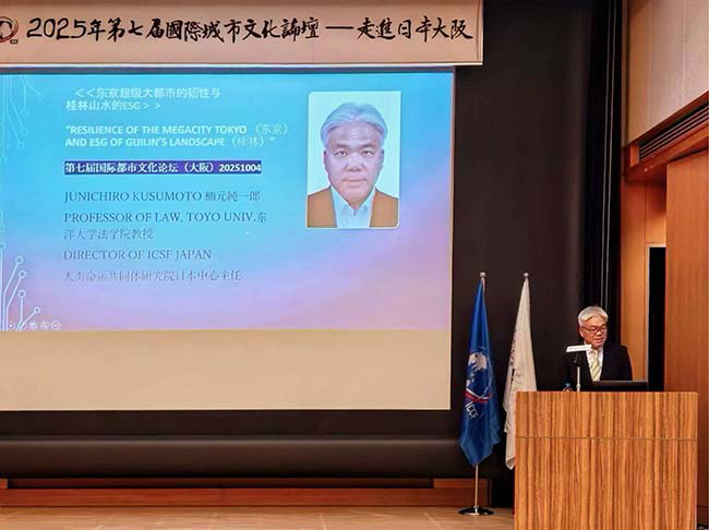 本屆論壇聚焦“全球不確定性下的城市韌性構建”主線,設置專家主旨演講、圓桌論壇及實踐案例分享三大核心環節。王鍵教授、楠元純一郎教授等海內外專家學者圍繞數字經濟賦能、ESG治理實踐、社會公平機制及城市創新戰略等關鍵議題展開深度研討,系統探討應對全球變局下城市可持續發展的實施路徑與戰略支點。中國社會科學院中國歷史研究院研究員、中國社會科學院大學教授、中華日本學會理事王鍵教授以《凝聚數字經濟與資訊技術領域的中日合作》為題,在中日城市合作領域,論壇指出數字經濟是重要合作方向,雙方在智慧城市建設、大數據防災減災、綠色數字技術研發等方面存在廣闊潛力,但也面臨技術標準對接、數據安全保障等挑戰,需通過政策協調與企業協作突破瓶頸;東洋大學法學部教授、國際人類命運共同體日本研究中心主任楠元純一郎教授聚焦《大都市東京,強韌性和ESG》,探討社會與ESG理念對城市抗風險能力的提升作用;此外,資訊管理專業創新特色大學客座教授、NHK資深製片人堂滿一成先生帶來《從古代城市難波京到大阪——國際都市的創新戰略》演講主題;中國聊城齊魯理工學院的董河東教授以《時空對話:公共藝術作為城市韌性的見證者——以中國聊城十二生肖雕塑廣場為例》為題,書寫城市變遷的記憶座標,促進人際聯結,激發文化自信;公益社團法人日出町銀髮人才中心代表理事副會長松尾欣治先生從社會契約論視角解讀《城市的誕生與個人的出現——從社會契約論到城市文化》;最後,由大阪公立大學大學院經營學研究科博士倪昳傑、大阪公立大學大學院經營學研究科博士馬力,分享《全球化與地方性博弈中的城市韌性建設》,為城市未來可持續發展作分析。