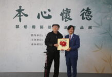 致辭結束後,曾曉輝主席分別向傅益瑤老師、賀偉老師及日本大阪博物館贈書法墨寶。