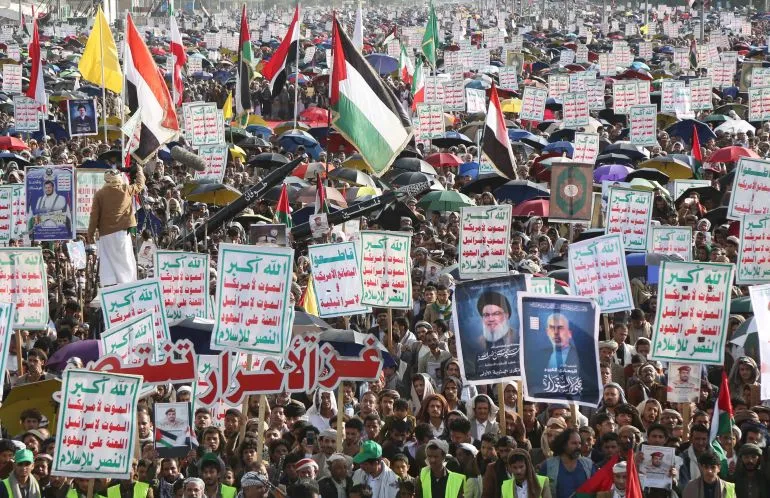民众抗议以色列击毙也门胡塞武装总参谋长