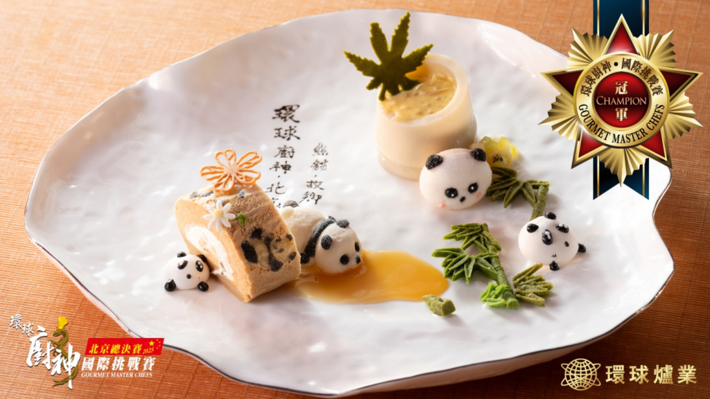 他的「熊貓的家園」,以慕斯為林,抹茶粉點綴竹林,四川水果凍凝結成晶瑩的河流。評審驚豔的,不只是技藝——墨魚汁染黑的熊貓耳朵,山藥泥塑造的豐潤體態,更是作品中那份跳脫框架的勇氣。