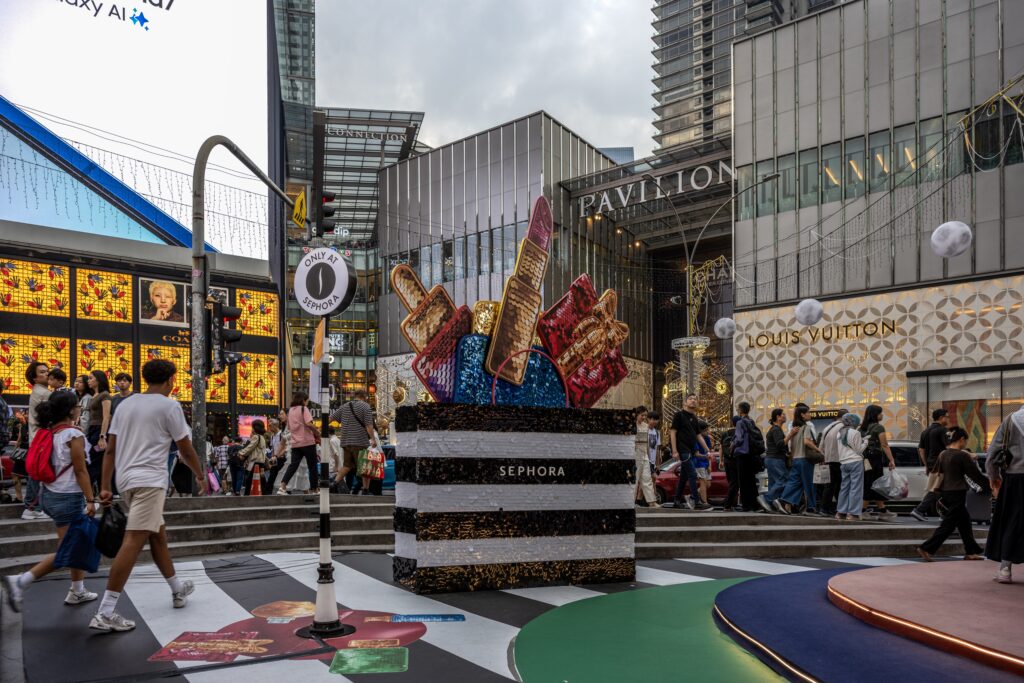 作品說明:本作品拍攝于馬來西亞吉隆坡柏威年商圈。畫面以城市街頭人流與商業裝置爲核心,呈現現代都市中消費符號、空間秩序與行人流動交織而成的日常景象,記錄城市中心真實而鮮活的壹刻。拍攝時間:2025年12月24日。