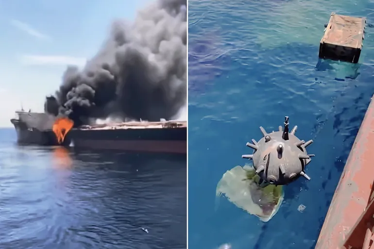 網路上流傳的影片截圖顯示,伊朗在霍爾木茲海峽佈設了水雷(TikTok)