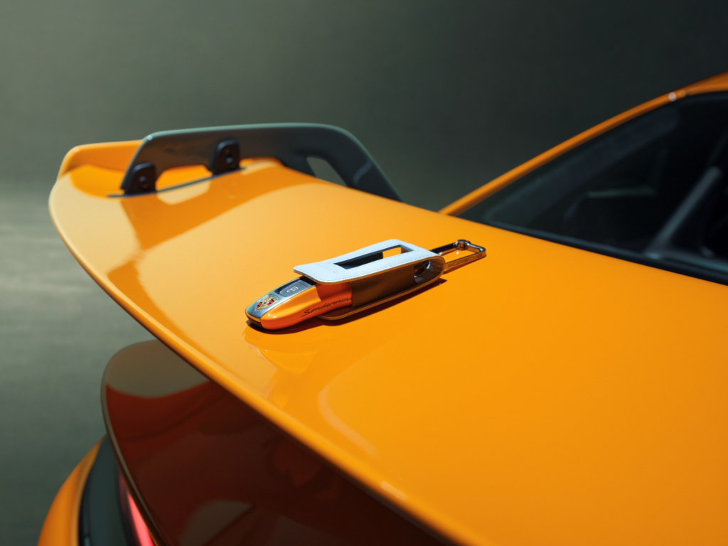 这辆名为“保时捷在华25周年典藏车”的定制孤品,基于911 GT3打造。911 GT3本身是保时捷赛道技术的公路化代表作——4.0升高转速自然吸气发动机,最高转速9000转/分,510马力,零百加速仅需3.4秒。但真正让它与众不同的,是保时捷顶级定制部门Sonderwunsch赋予的一系列“首次”设计。