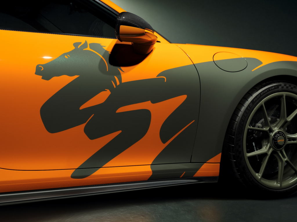 车身最引人注目的是一幅手绘骏马涂装。 这一主题既呼应2026年中国农历马年,也与保时捷盾徽及斯图加特市徽中的骏马形象相契,被视为东西方文化在一台跑车上的深度对话。