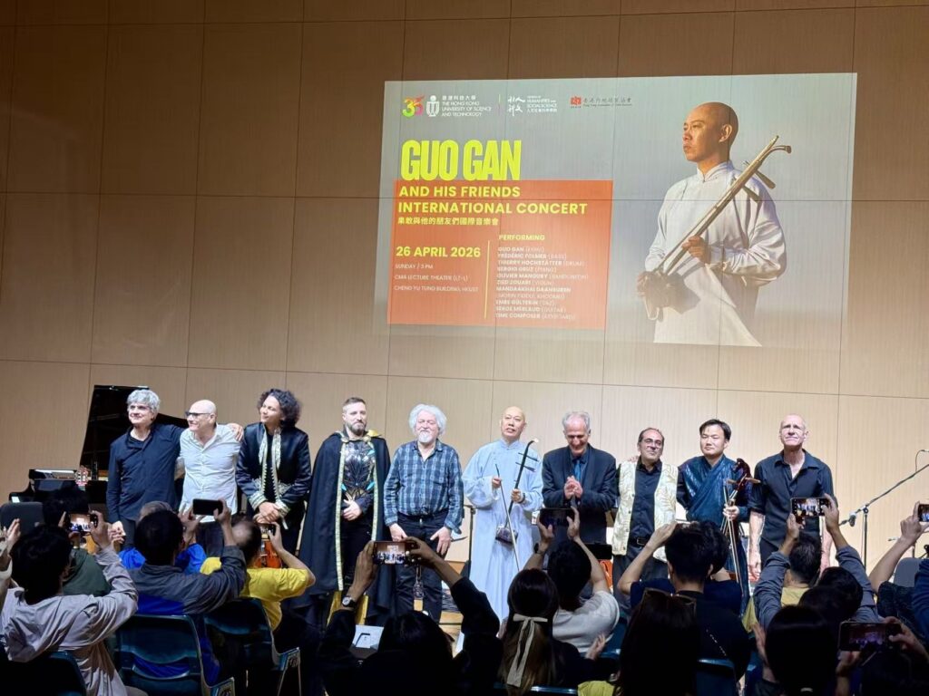 【中華新聞通訊社/中華時報訊】2026 年 4 月 26 日,由香港科技大學主辦的「果敢與他的朋友們國際音樂會(Guo Gan and His Friends International Concert)在香港科技大學盛大奏响。這場由國際知名二胡大師果敢領軍的跨界藝術盛宴,匯聚來自全球各地的頂尖音樂家,以二胡為核心紐帶,融合中西樂器之美,演繹多元文化交響詩,為現場 300 餘名觀眾帶來極致的視聽體驗,生動展現了中外文化交融的獨特魅力。