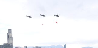 林鄭等出席升旗儀式和國慶酒會 大批警員戒備