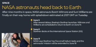 滯留國際太空站9個月的兩名美國太空人返抵地球,太...