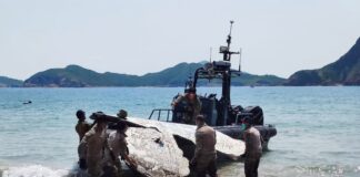 警方派員到西貢白腊灣將懷疑火箭碎片用快艇運走