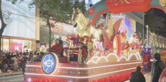 尖沙咀花車巡遊 途經街道人頭湧湧