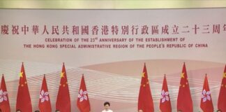 香港特區成立23周年慶祝酒會在會展舉行,林月娥出...