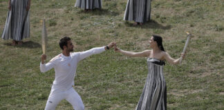 希臘舉行巴黎奧運聖火採集儀式 賽艇冠軍恩圖斯科斯...