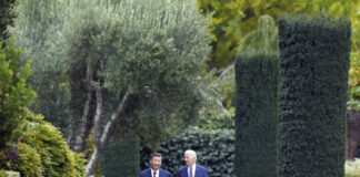 拜習午宴後並肩散步 拜登回應記者「雙手比讚」