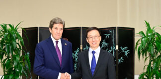 韓正晤克里 稱中美保持氣候對話合作有重大積極意義...
