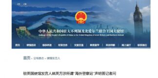 英國命令中國關閉在英領土的非官方警察站 中國駐英...