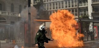 希臘火車對撞引眾怒 示威者向警察投擲石頭汽油彈