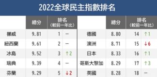 俄羅斯民主倒退最烈 台灣2022民主指數亞洲第1...