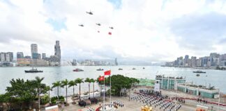 特區政府在會展舉行升旗儀式和國慶酒會 中聯辦也舉...