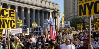 紐約數千人遊行高喊「沒有仇恨」抗議美國總統川普的...