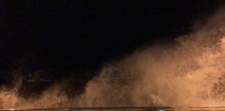圓規靠近 杏花邨風勢強勁大浪拍打海濱長廊