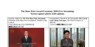 2020 年度「邵逸夫獎」頒獎禮首度以網上直播形...