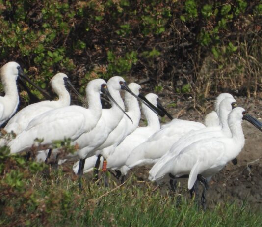 大批珍稀瀕危鳥類黑臉琵鷺飛抵廣東過冬