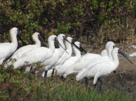 大批珍稀瀕危鳥類黑臉琵鷺飛抵廣東過冬
