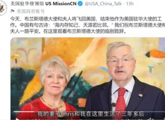 美国驻华大使布兰斯塔德今天10月4日携夫人...