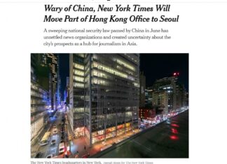 《紐約時報》決定將香港辦公室電子新聞業務遷往首爾
