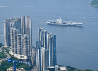 山東艦航母編隊抵達香港 艦上官兵排列“國安家好”字樣問好...