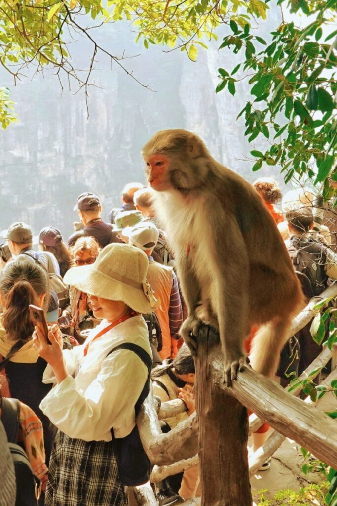作品簡介:2024年11月1日,隨中國老攝影家協會第三屆老年影展活動到張家界黃石寨景區采風,看到一位看手機的遊客身有站著一只母猴,正神情貫注的注視著遊客的手機頻幕,被手機上的內容所吸引。