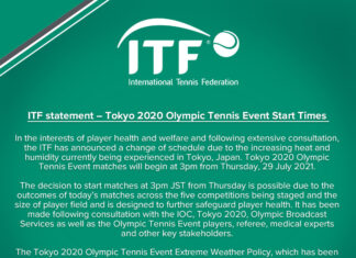 中华时报消息(赵雪湄)为了球员的健康和利益,经过广泛的协商,国际网球联合会宣布由于日本东京当地持续的湿热,我们决定改变赛程安排。2020东京奥运会网球项目比赛从2021年7...
