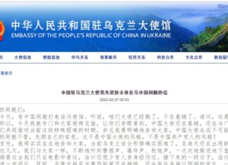 中國駐烏克蘭大使星期天(2月27日)表示,...