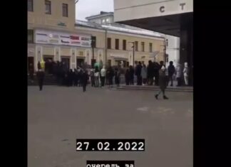俄羅斯銀行提款機前排長龍