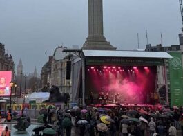 爱尔兰传统节日庆典—“圣帕特里克节”在伦敦特拉法加...