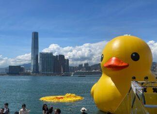 維港展出巨型橡皮鴨 一隻放氣避免風險飄浮於海面