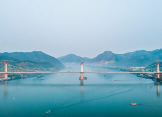 世界最大跨徑獨柱式三塔空間纜懸索橋合龍