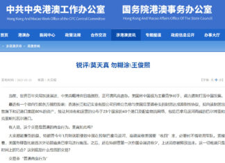 3月13日,中國國務院港澳辦官網轉載一篇來源為《大...