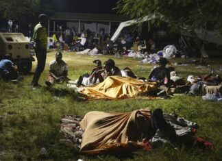 很多病人要睡在醫院外的草地。(美聯社) ...
