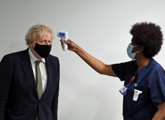 約翰遜到倫敦一間醫院視察,有職員為他量體溫...