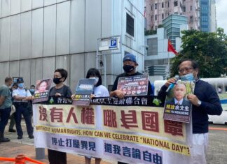 支聯會等團體到中聯辦外抗議 促釋放被拘留12港人