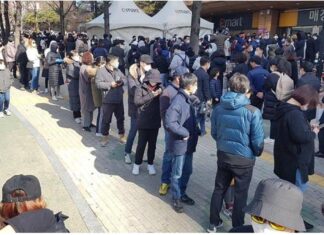 南韩一罩难求 卖场排队人龙看不到尾巴