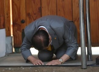 南韩新天地教会教主李万熙为播毒下跪及低头致歉