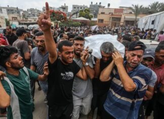 巴勒斯坦人哀悼在以色列襲擊中喪生的親屬