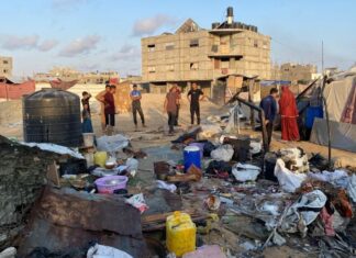 圖集:以色列襲擊汗尤尼斯流離失所巴勒斯坦人的帳篷後的情況