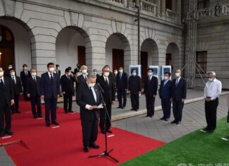 (中華時報/中華新聞通訊社台北14日電)前總統李登輝入殮火化禮拜今天上午舉行後,移靈車隊至總統府進行最後巡禮,總統府秘書長李大維、國安會秘書長顧立雄率隊在府前廣場向李登輝敬...