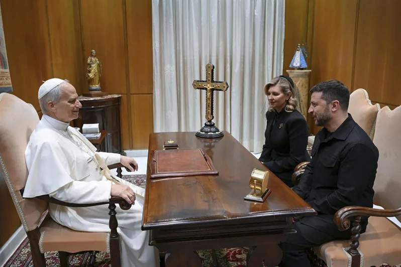 教宗良十四世接見澤倫斯基夫婦 祈禱烏克蘭和平 澤倫斯基又...